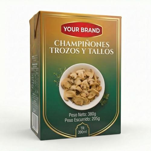 Nuestros champiñones de calidad superior, envasados en el innovador cartón Tetra Recart®, ofrecen una alternativa de vanguardia a los champiñones enlatados tradicionales. Este envase ha sido diseñado específicamente para satisfacer la creciente demanda global de sostenibilidad, eficiencia logística y una calidad de sabor fresco.